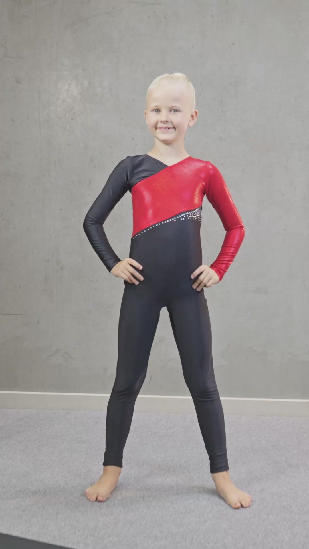 Harjoittelu kohtaa kilpailun. Monet lapset haaveilevat “oikeasta voimistelupuvusta” viikoittaiseen harjoitteluun. Tässä se on. Voimistelupuku, jossa on sekä kimalletta että paljetteja – jotta voimistelija loistaa salissa. Pitkähihainen kokopuku – täydellinen toisinaan viileisiin saleihin.