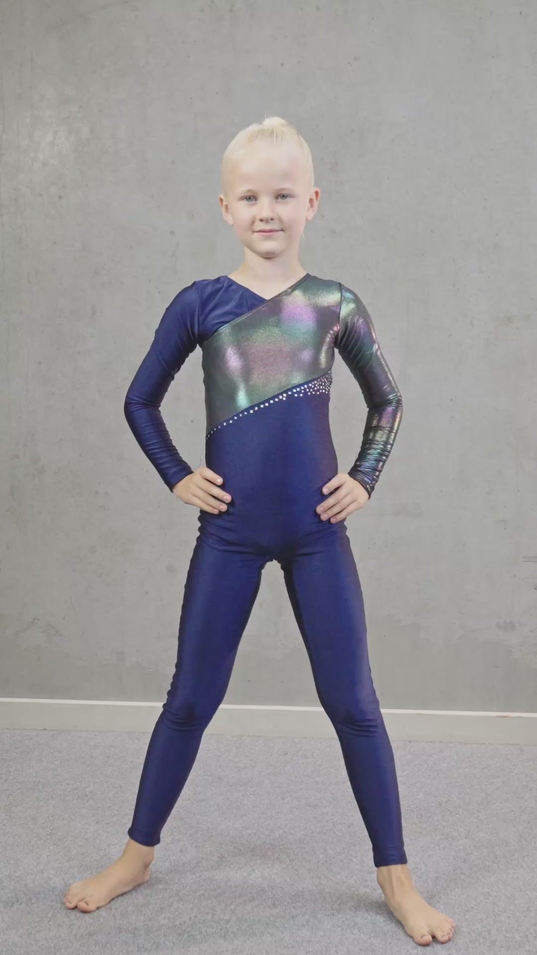 Harjoittelu kohtaa kilpailun. Monet lapset haaveilevat “oikeasta voimistelupuvusta” viikoittaiseen harjoitteluun. Tässä se on. Voimistelupuku, jossa on sekä kimalletta että paljetteja – jotta voimistelija loistaa salissa. Pitkähihainen kokopuku – täydellinen toisinaan viileisiin saleihin.