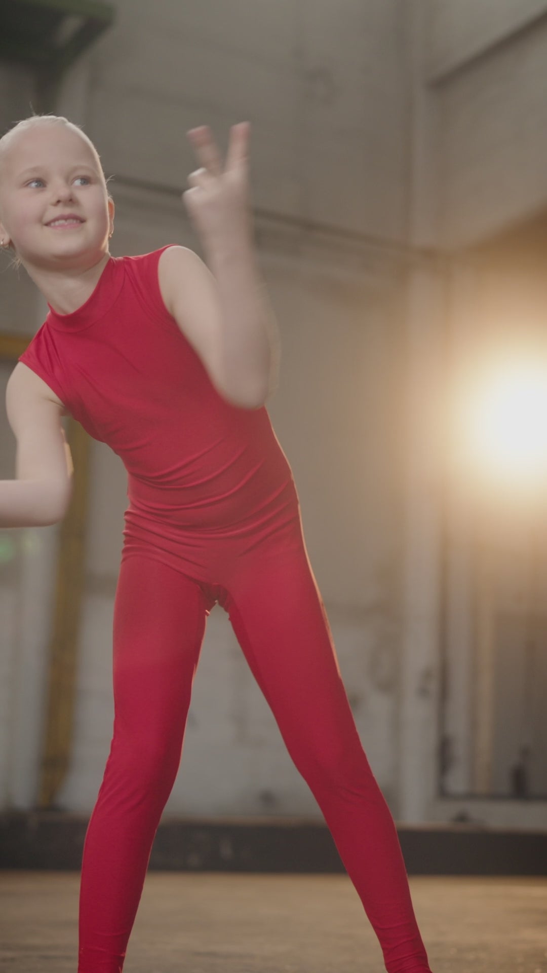 Klassinen ja voimistelullinen haalaripuku tytöille vaativampaan voimisteluohjelmaan. Pääntiessä on hieman korkeutta, selässä on pisarakiinnitys ja puvussa on jalkalenkit. Näyttävä peruspuku punaisena, jossa upeat voimistelulliset liikkeet korostuvat.