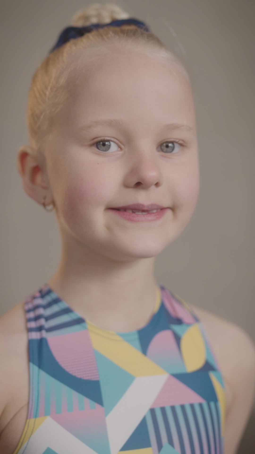 Täydellinen nuoremmille voimistelijoille, jotka haaveilevat “oikeasta” voimistelupuvusta. Monet kauniit yksityiskohdat tekevät siitä suositun kaikissa voimistelusaleissa.